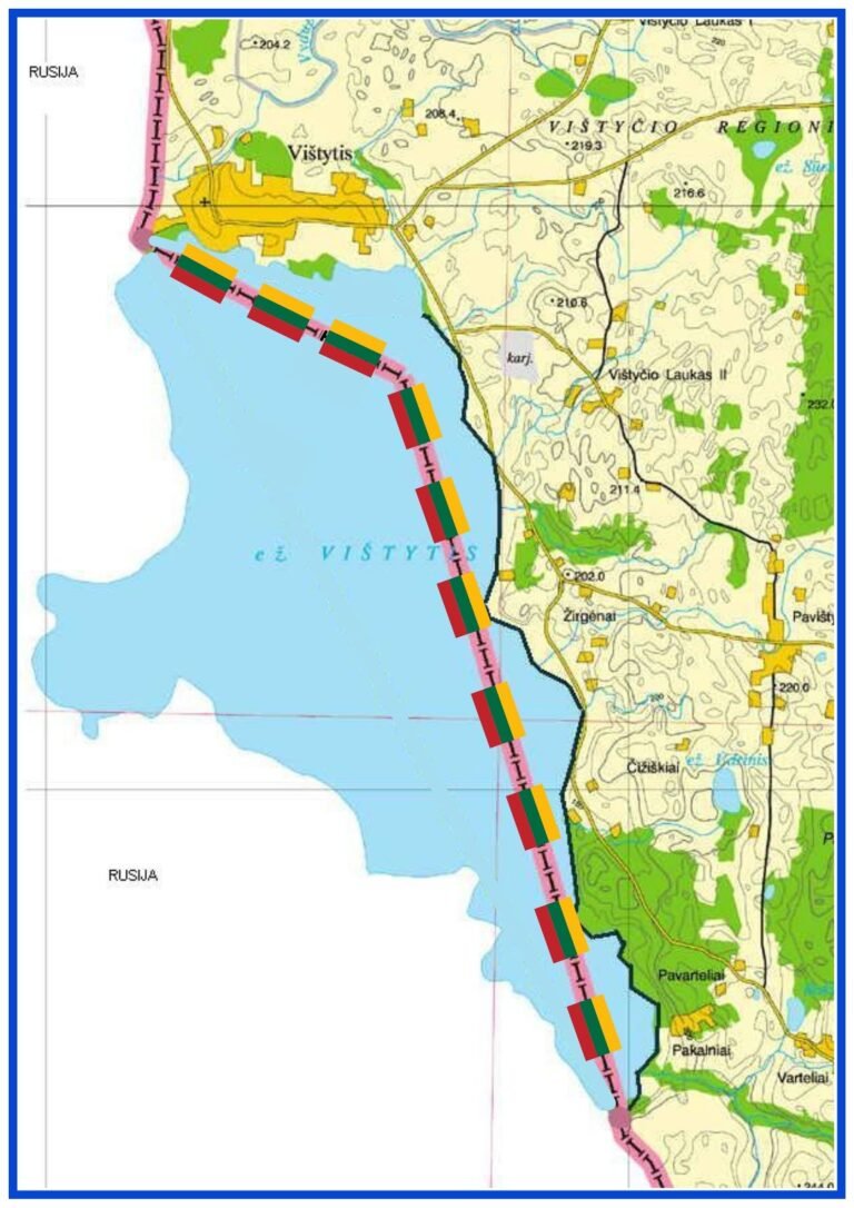 Vištyčio ežeras, Lietuva. Plaukimas palei Lietuvos valstybės sieną